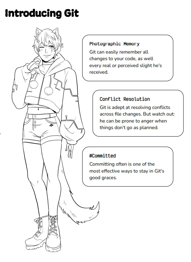Meet Git and learn about his most fundamental commands through a dress-up game involving his friends: CSS, HTML, ARIA, and Boba-tan.